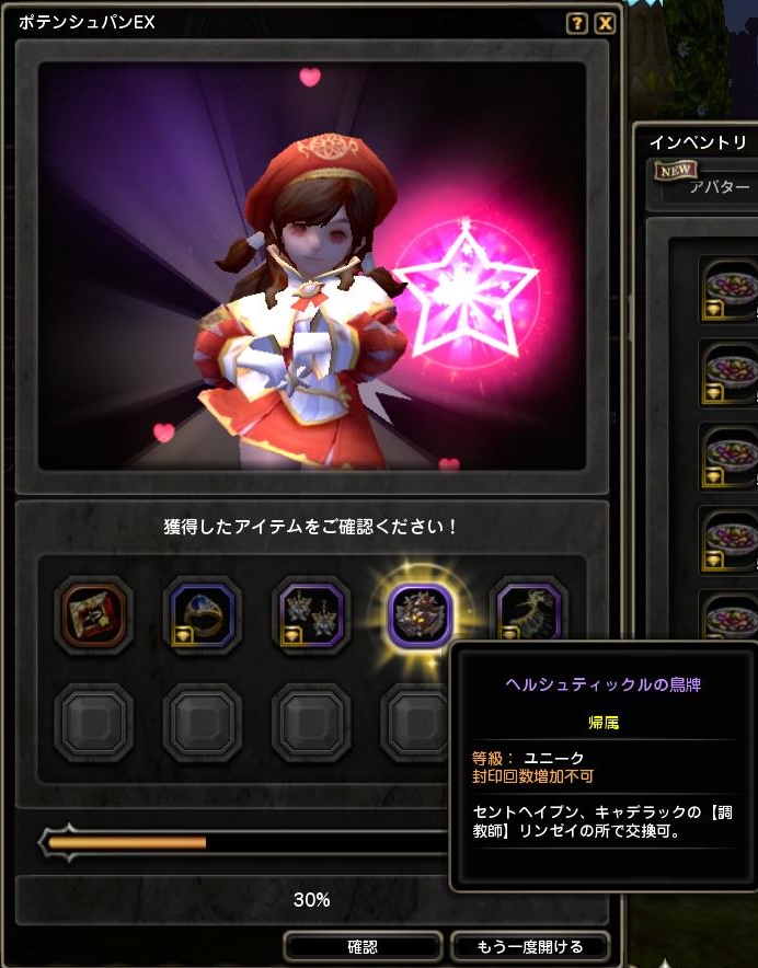 (実はサマナーの方でポテンシュパンEX30を一つ購入したら運良く出てきてくれた)