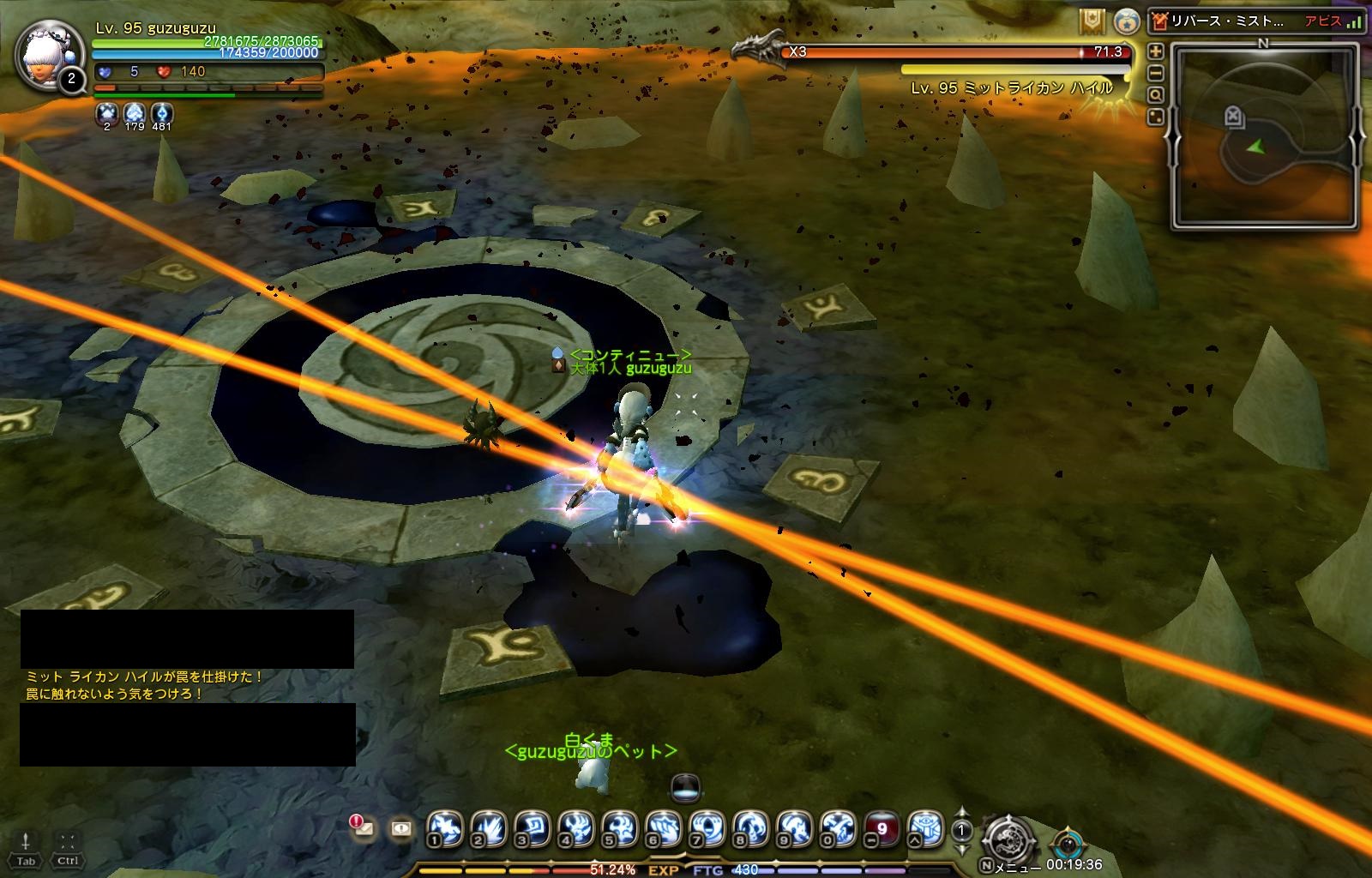 全エリア攻撃で写真のように緑の安全地帯があるので、そこに避難。